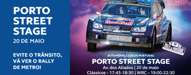O Metro é o meio de transporte preferencial para chegar à Street Stage do Rally de Porto. Dia 20 de Maio, a partir das 19H00, entre a Trindade e S. Bento. Conheça toda a operação especial que preparamos.