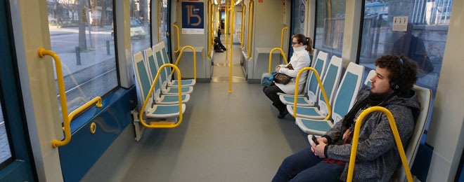 Nesta versão reconfigurada, os bancos encontram-se encostados às laterais do veículo, ampliando deste modo o espaço útil no interior da composição. Esta solução aumenta o espaço disponível para os passageiros – até cerca de 10 por cento -, por comparação com a solução de bancos transversais originalmente adotada nos Eurotram. O que é bastante relevante em termos de capacidade, sobretudo nas horas de ponta. Além do conforto e da comodidade acrescidos, a reconfiguração do interior do Metro facilita o transporte de bagagens de grande volume, importante nos serviços da Linha Violeta, de e para o Aeroporto.
